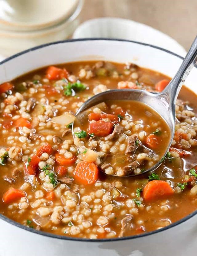 • Nutrition: Loaded with protein, fiber, and essential nutrients from beef, barley, and vegetables.